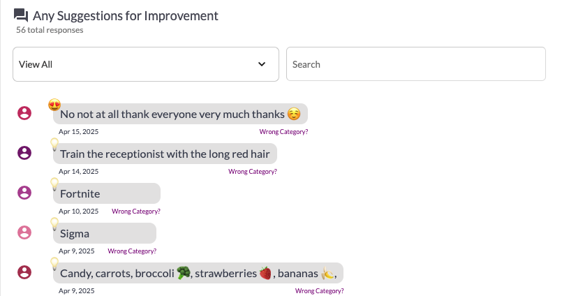 Pulse’s system humanizes the feedback patients give. Results of patient feedback from one of our clients directly shows the organization areas in which they’re doing great and other areas where they can improve.